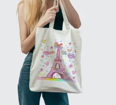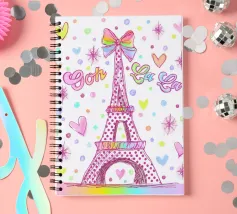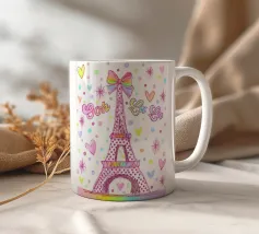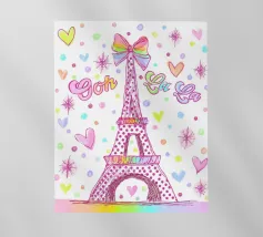 Un disegno della Torre Eiffel con pois e cuori.
