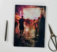 Catturata con il flash di una macchina fotografica usa e getta, questa scena sorprende per la sua spontaneità e il suo calore umano. Le sagome in movimento, l'illuminazione severa e l'emozione collettiva che ne scaturisce fanno di questo poster una vibrante testimonianza dell'amore per la musica. Regalatevi un souvenir senza tempo dell'effervescenza parigina.