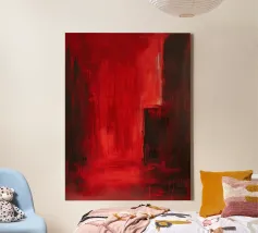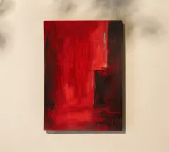 Una suggestiva composizione astratta che esplora la tensione tra oscurità e illuminazione. Le profonde tonalità cremisi si diffondono sulla tela, evocando la sensazione di entrare in un corridoio nascosto di emozioni. La pennellata strutturata e le sottili transizioni tra il rosso e l'ombra creano un'atmosfera al tempo stesso intima e vasta, uno spazio tra passione e mistero.