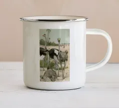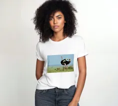 Lo struzzo, con il suo corpo grande e le sue zampe lunghe e forti, cammina con forza sul terreno. Le sue piume grigio-marroni si combinano con le piccole ali ripiegate vicino al corpo, l'alto collo proteso in avanti e i grandi occhi rotondi che brillano di attenzione. Ogni passo potente sembra raccogliere tutta la sua forza, creando una sensazione di selvatichezza e di orgoglio, dimostrando agilità e feroce vitalità nella vasta natura.