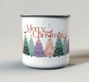 Fila di alberi di Natale pastello con scritta "Merry Christmas".