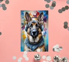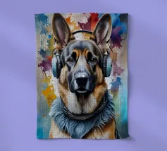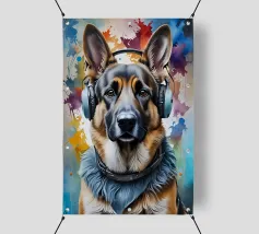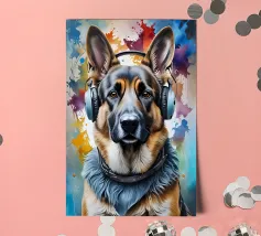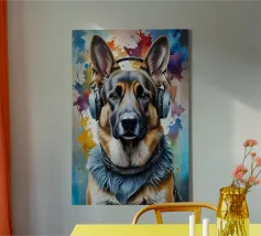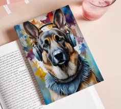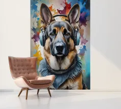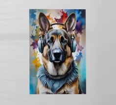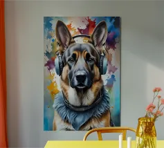 Pastore tedesco con le cuffie