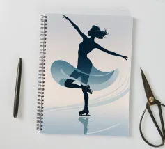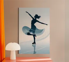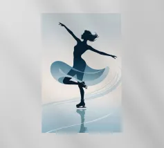 La leggiadra silhouette di una donna che scivola sul ghiaccio, con le sue forme che evocano equilibrio e pace. Le curve morbide e i toni freddi catturano la serenità del movimento invernale, un momento di libertà sospeso nel tempo.
