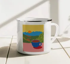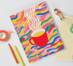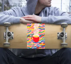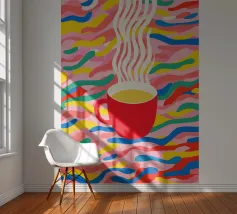 Allegra arte contemporanea nello stile del Gruppo Memphis: questa composizione dinamica trasforma il semplice piacere del caffè in una festa visiva. I flussi ondulati di colore ricordano i dipinti delle piscine di David Hockney, combinati con un'estetica giocosa. I colori primari brillanti e le forme organiche creano pura gioia di vivere, un'ode ottimista ai rituali quotidiani. Le nuvole di vapore psichedelico trasformano la routine in pura poesia. Un'opera d'arte da parete perfetta per tutti gli amanti del caffè e per gli appassionati di illustrazioni audaci e contemporanee. Porta facilmente il buon umore nella cucina del caffè!