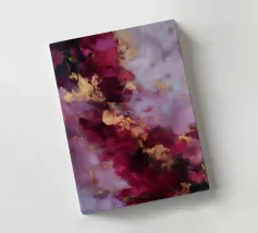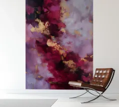 Questa composizione astratta combina accenti rosa-lilla, viola e oro in morbidi strati di pastello e pigmenti. Espressivo e moderno, l'acquerello incontra lo stile grunge e vintage - perfetto come elegante decorazione murale con profondità artistica.