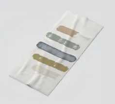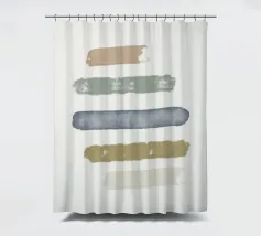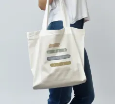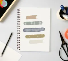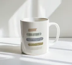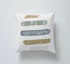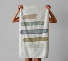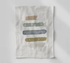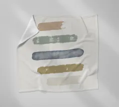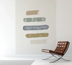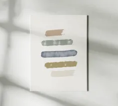 Un'opera d'arte astratta e minimalista con pennellate di diverse lunghezze e in diverse tonalità della terra come marrone, blu, beige e verde.