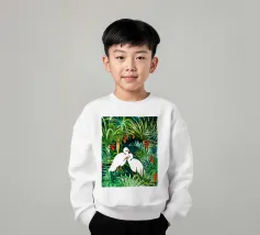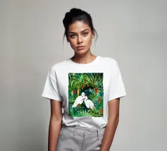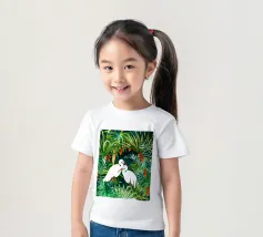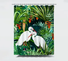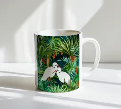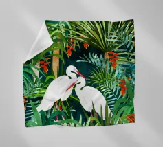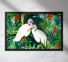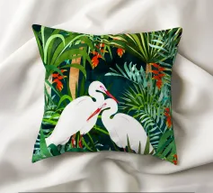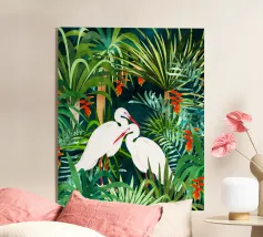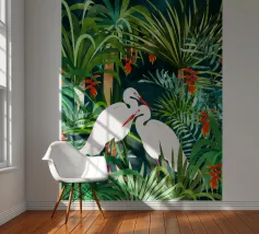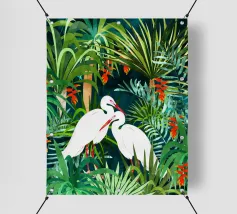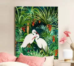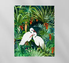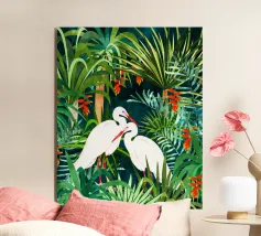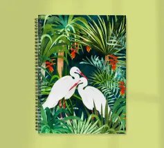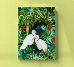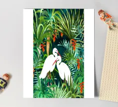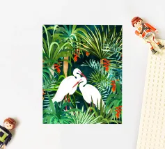 airone uccelli animali verde natura tropicale giungla foresta lussureggiante carino coppia amore amici acquerello piante alberi pittura piante botaniche