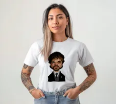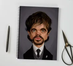 Illustrazione caricaturale umoristica del noto attore e produttore americano Peter Dinklage. Una di una serie di caricature realizzate per la serie Celebrity Sunday, in cui un personaggio famoso viene ritratto nell'arco di una giornata. L'idea è di mostrarli come in una fototessera per avere coerenza.