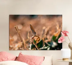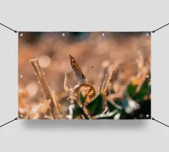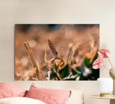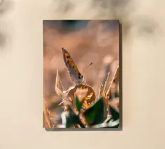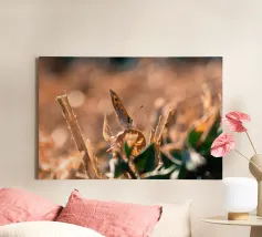 Una piccola farfalla si è posata tranquillamente su un cespuglio secco, come se volesse cogliere gli ultimi raggi di sole. Nonostante il caldo soffocante e le foglie secche, sembra godersi la calma. Anche quando tutto intorno sembra bruciato, porta con sé un tocco di poesia.