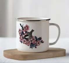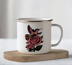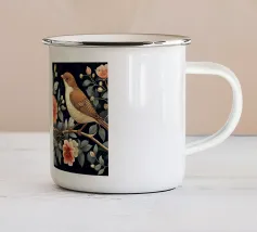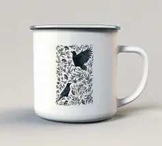 Due allegri pettirossi appollaiati insieme, che catturano l'essenza del fascino della natura. Un design delizioso, perfetto per gli amanti degli uccelli e della natura.