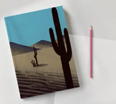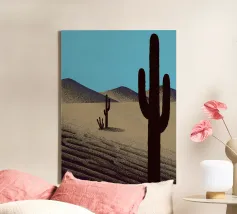 L'accattivante bellezza del deserto! Questo disegno presenta cactus che prosperano in mezzo a una vasta distesa di sabbia, creando un'atmosfera pacifica e serena.