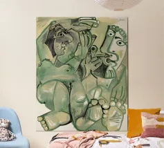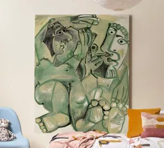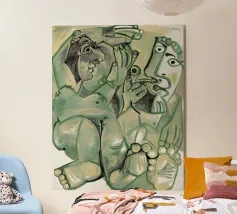 Immergetevi nelle "Figure in verde" di Pablo Picasso, un'opera astratta potente e dinamica che mostra il suo approccio innovativo alla forma umana. Questo dipinto accattivante presenta due figure intrecciate, rese con contorni decisi e una tavolozza sorprendente di verdi, grigi e sottili tonalità della terra. Le forme frammentate ma espressive e i tratti esagerati esemplificano la maestria di Picasso nel trasmettere emozioni e profondità attraverso l'astrazione. Il nostro poster digitale di alta qualità, con una risoluzione di 7000x5000 pixel e 300 dpi, riproduce in modo impeccabile ogni tratto audace e ogni sfumatura, offrendo un'immagine di grande effetto.