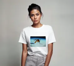 La minuscola zanzara, con il corpo nero e le ali di seta, atterrò con leggerezza sul pavimento. Le sue sei zampe lunghe e magre si reggevano, sembrando allo stesso tempo fragili e agili. La sua proboscide affilata puntava in avanti, come se cercasse un bersaglio. Sotto la luce, le sue ali sottili svolazzavano leggermente, riflettendo la debole luce scintillante e dandogli un aspetto fragile ma vigile.