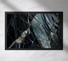 L'immagine mostra una nobile superficie in pietra d'agata dalle profonde sfumature nere, grigie e pastello, intervallate da sottili venature dorate. La struttura spezzata ma artistica conferisce un'estetica lussuosa e organica. Ideale per l'interior design, per rivestimenti esclusivi, per piastrelle di marmo o come sfondo sofisticato. La combinazione di elementi scuri e scintillanti crea un look moderno ed elegante. texture del marmo, venature dorate, pietra agata, superficie di lusso, arte astratta, pietra naturale, interior design, estetica nobile, dettagli dorati, design di tendenza, esclusivo