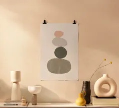 Composizione minimalista di ciottoli impilati in tonalità pastello