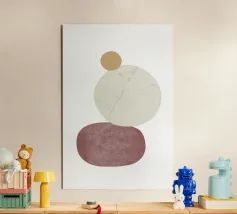 Composizione minimalista di ciottoli impilati in tonalità pastello