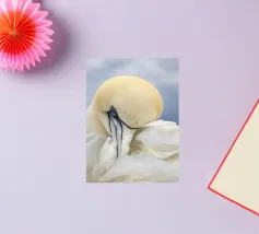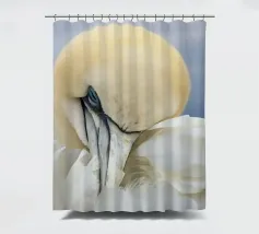 I piccoli occhi neri spiccano chiaramente sulla superficie chiara, conferendo un'espressione curiosa e gentile. Il becco è corto e leggermente ricurvo, colorato in una tenue tonalità di grigio o giallo. Anche con il suo aspetto semplice, la testa del pinguino bianco ha un aspetto unico ed elegante, come se fosse stata modellata magnificamente dalla natura.