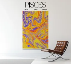 Un design stravagante a tema Pesci che presenta motivi morbidi e fluidi ed elementi eterei per rappresentare la natura intuitiva, fantasiosa ed emotivamente profonda del segno zodiacale dei Pesci. Con una tavolozza di colori acquatici e rilassanti, questa opera d'arte incarna il legame dei Pesci con i sogni, l'empatia e l'espressione creativa. Perfetto per chi apprezza la spiritualità, l'estro artistico e la profondità emotiva. Ideale per gli appassionati di astrologia, i seguaci dell'oroscopo e gli amanti dell'arte fluida e sognante. Un'aggiunta serena alla vostra decorazione murale, ai poster, all'abbigliamento e altro ancora!