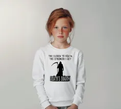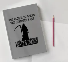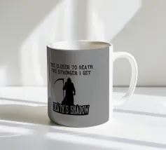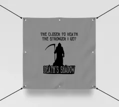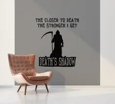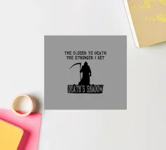 Questo disegno raffigura l'ombra della morte in piedi e sopra di essa è scritto "Più vicino alla morte, più forte divento" e sotto di essa è scritto "Death's Shadow". Questo disegno rende omaggio alla carta di Magic chiamata "Death's Shadow" e anche al mazzo a cui dà origine. Se siete giocatori di Magic che possiedono questo mazzo, questo disegno è stato realizzato per voi!