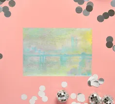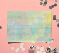 I toni tenui e i contorni sfocati evocano il mistero e la serenità del cielo londinese in continua evoluzione.