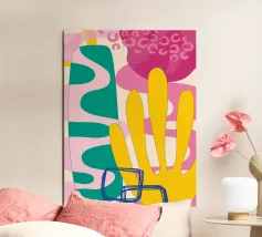 Questo accattivante design pop art dona nuova energia a qualsiasi ambiente grazie ai suoi vivaci colori giallo, rosa e verde. Le forme giocose e i contrasti colorati combinano le vibrazioni retrò con l'estetica moderna, rendendo il motivo un vero e proprio richiamo visivo. Perfetto per murales, tazze, cover per cellulari, cuscini e altro ancora. Come decorazione per il salotto o come regalo unico, questo disegno è ideale per tutti coloro che amano i colori vivaci e lo stile creativo.