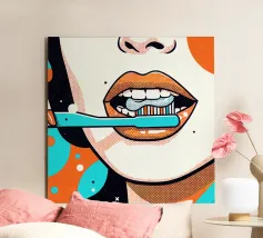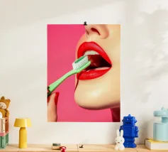 Giocosa e potente, la stampa celebra i rituali quotidiani con un design ispirato ai fumetti. La struttura audace e i colori contrastanti rendono quest'opera d'arte digitale ricca di carattere. Influenzata dall'arte di Roy Lichtenstein, questa stampa è perfetta per le case contemporanee, gli studi d'arte e gli amanti del design moderno della cultura pop. Aggiungete immediatamente energia e raffinatezza alla vostra galleria a muro o aggiungete un tocco chic al vostro bagno.