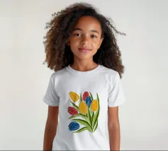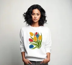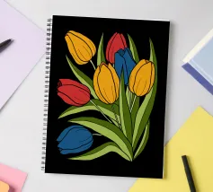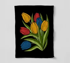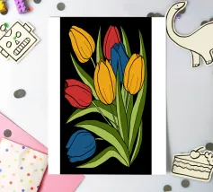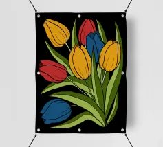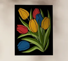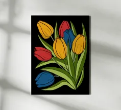 Questa vibrante illustrazione presenta uno splendido bouquet di tulipani in audaci colori Pop che riecheggiano l'energia giocosa del movimento Bauhaus. La giustapposizione delle forme organiche dei tulipani con l'intensità grafica dei colori crea un pezzo visivamente accattivante che celebra sia la natura che l'arte astratta in una fusione armoniosa.