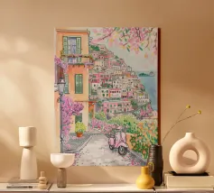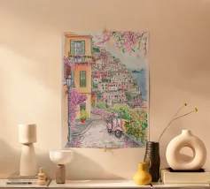 Vi presentiamo il nostro piccolo angolo di Juniqe, dove proponiamo arte a tema italiano che vi trasporterà direttamente in una pittoresca cittadina della Costiera Amalfitana.