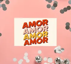 Ravvivate il vostro arredamento con questo poster Amor, caratterizzato da ripetizioni colorate. Una creazione grafica retrò che mescola romanticismo e stile pop, ideale per portare calore ed energia alla vostra casa.