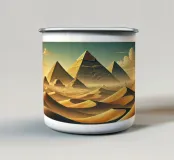 Poster di viaggio vintage delle Piramidi di Giza in Egitto con nitide sagome di pietra, sabbia calda, morbide increspature delle dune, lunghe ombre serali e un cielo limpido con luce ambrata. Le forme geometriche pulite, la sottile texture della carta e l'equilibrata tavolozza del deserto creano una stampa monumentale senza tempo, ideale per soggiorni, studi e arredamenti a tema viaggio.