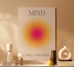 Espandete la vostra coscienza con il poster "Open Your Mind", un'opera di grande impatto visivo progettata per ispirare la liberazione mentale. L'opera d'arte presenta un accattivante gradiente di aura, che passa da un radioso arancione dorato ai bordi esterni a un vibrante fucsia, con un nucleo rosa intenso e brillante. Questa ipnotica miscela di colori evoca un senso di introspezione, creatività e risveglio spirituale. Le scritte "MIND" in alto e "OPEN YOUR MIND" in basso incorniciano questa potente immagine, incoraggiando pensieri profondi e nuove prospettive. Si tratta di un poster digitale di qualità superiore, meticolosamente c