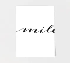 Il design "Smile" suscita un sorriso in qualsiasi ambiente. Con la sua tipografia curva e scritta a mano in nero su sfondo chiaro, irradia leggerezza e gioia di vivere. Questo motivo elegante e minimalista è perfetto per soggiorni, camere da letto o spazi di lavoro che devono emanare un'atmosfera positiva. È ideale come murale, cuscino, tazza o cover per il cellulare ed è una splendida idea regalo per chiunque voglia diffondere gioia.