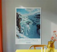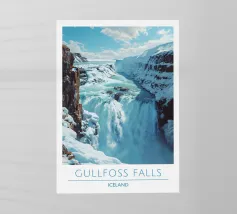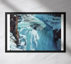 Catturate la maestosa potenza del Circolo d'Oro islandese con questo splendido poster digitale delle cascate di Gullfoss in inverno. L'opera d'arte mostra in modo drammatico l'imponente cascata a gradoni, con l'acqua turchese e ghiacciata che precipita tra le pareti del canyon coperte di neve. Il cielo azzurro e la neve bianca sottolineano la bellezza cruda e fredda del paesaggio islandese. Questo file digitale di alta qualità (7000x5000 pixel, 300 dpi) offre un dettaglio e una profondità di colore senza pari, perfetto per creare un pezzo di spicco in casa o in ufficio. Una stampa eccezionale per gli amanti della natura e del design nordico.