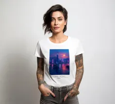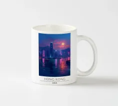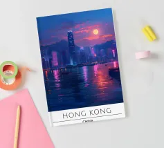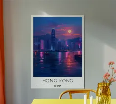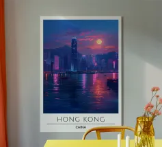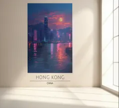 Ammirate l'energia elettrica del Victoria Harbour di Hong Kong, Cina, di notte, catturata in questa ipnotica opera d'arte digitale. I grattacieli illuminati si riflettono intensamente sull'acqua sottostante, creando uno straordinario effetto scintillante dominato da rosa, viola e blu neon. Una grande e luminosa luna piena si staglia nel cielo crepuscolare, amplificando la drammatica atmosfera neo-noir/synthwave. Questa vista cattura perfettamente l'estetica futuristica e vivace della città. Questo poster digitale di qualità superiore (7000x5000 pixel, 300 dpi) garantisce dettagli eccezionali e brillantezza dei colori.