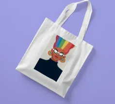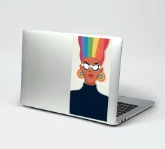 Un ritratto bello e potente di una donna con capelli color arcobaleno che si irradiano dalla testa. L'immagine è una celebrazione vibrante e gioiosa della creatività, della diversità e dell'identità espressiva.