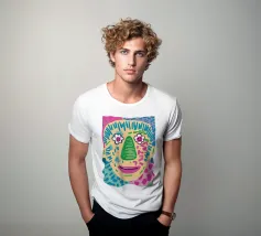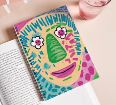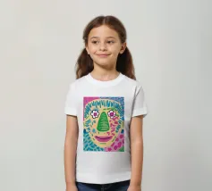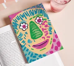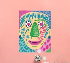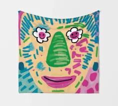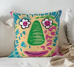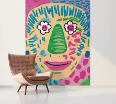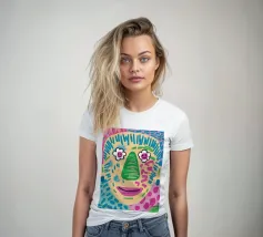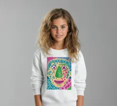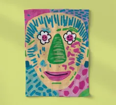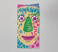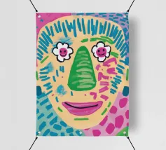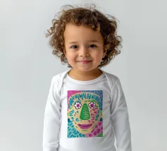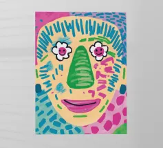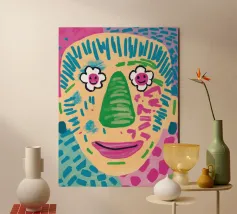 Un ritratto astratto vibrante e crudo, creato con un tripudio di pennellate e forme colorate ed espressive. Il volto è decostruito, con occhi ampi e multicolori, creando un'opera potente ed energica.