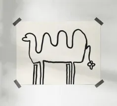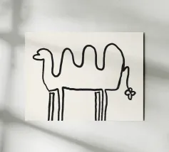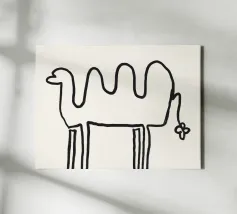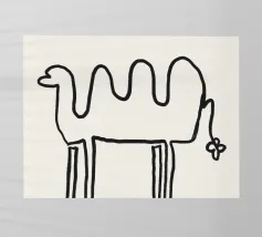 Un disegno semplicistico raffigura una creatura con un lungo collo, tre gobbe e una piccola coda. La coda è ornata all'estremità da una forma simile a un fiore.