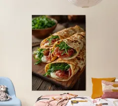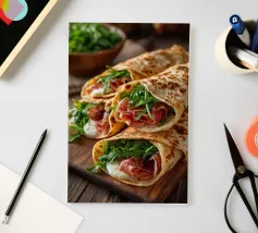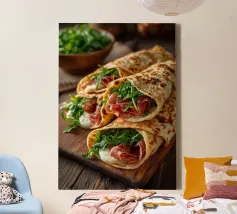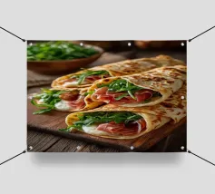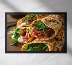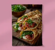 focaccia prosciutto rucola mozzarella tavola di legno piatto piatto da portata servire rustico antipasto spuntino gourmet cucina delizioso accatastato salumi formaggio fresco verdure in foglia pasto