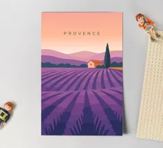 Design da viaggio provenzale decorativo e minimalista per chi ama i campi di lavanda del sud-est della Francia. Idea regalo ideale per chi ama viaggiare in Francia.