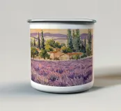 Un classico paesaggio provenzale presenta una casa rustica circondata da campi di lavanda e da iconici cipressi, che catturano il fascino senza tempo e la serena bellezza della campagna francese.
