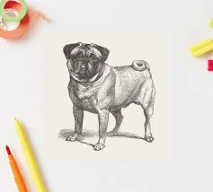 Disegno d'epoca rimasterizzato di un cane carlino