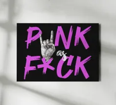 Fatevi notare con questo slogan "PUNK as F*CK" in nero e rosa. Questa audace illustrazione unisce una tipografia ribelle a colori vivaci per un look unico.