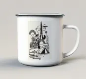 Questa moderna illustrazione al tratto riunisce i simboli parigini - Torre Eiffel, Notre-Dame, Louvre e ponti - rivisitati con contorni giocosi e dettagli grafici astratti.