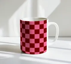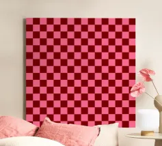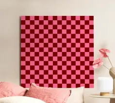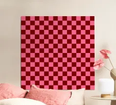 Un classico motivo a quadri retrò nei toni del bordeaux e del rosa vivace. Perfetto per aggiungere un tocco giocoso ma elegante all'arredamento eclettico della casa, soprattutto durante le festività.