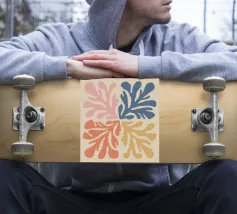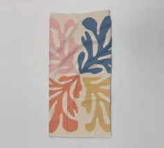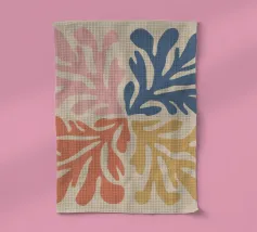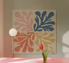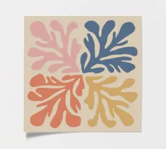 Una composizione in stile maraoui presenta quattro quadranti, ciascuno caratterizzato da una diversa combinazione di colori di foglie stilizzate, creando un disegno armonioso ed equilibrato.
