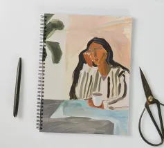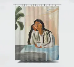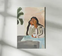 "Quiet Contemplation" è una raffigurazione serena e astratta di una donna profondamente pensierosa che culla una tazza in mano. I toni caldi e terrosi si fondono armoniosamente con i colori pastello, evocando un senso di calma e introspezione. Con pennellate minimaliste ma espressive, quest'opera d'arte cattura un momento di riflessione in un ambiente tranquillo e illuminato dal sole. La semplicità della composizione, arricchita da una sottile vegetazione sullo sfondo, aggiunge un tocco di tranquillità e consapevolezza, rendendola un pezzo perfetto per gli spazi che cercano un'atmosfera calma e contemplativa. Progettato da BALIKA HOMES.
