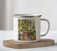 Quest'opera d'arte mostra una stanza vivace piena di alberi di limoni e di verde assortito. Il giallo intenso dei limoni crea un'atmosfera vivace e rinfrescante.