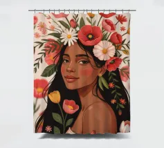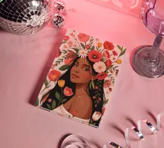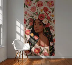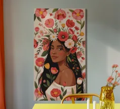 Un dipinto di una persona circondata da un'abbondanza di fiori colorati.