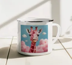 Una giraffa si staglia in primo piano, ornata da motivi vivaci e colorati. Lo sfondo è una sfumatura liscia, che esalta l'aspetto unico della giraffa in un ambiente vivace.