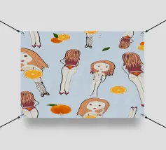 Ragazza arancione in vacanza per il modello di asciugamano da spiaggia